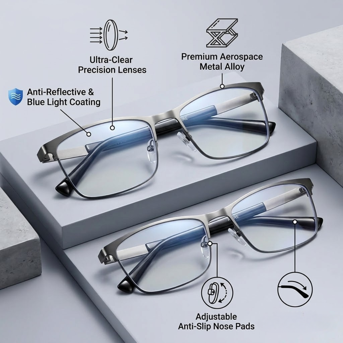 Designed for both men and women, these glasses combine modern style with everyday comfort. Their lightweight frame makes them easy to wear at home, work or during travel.
